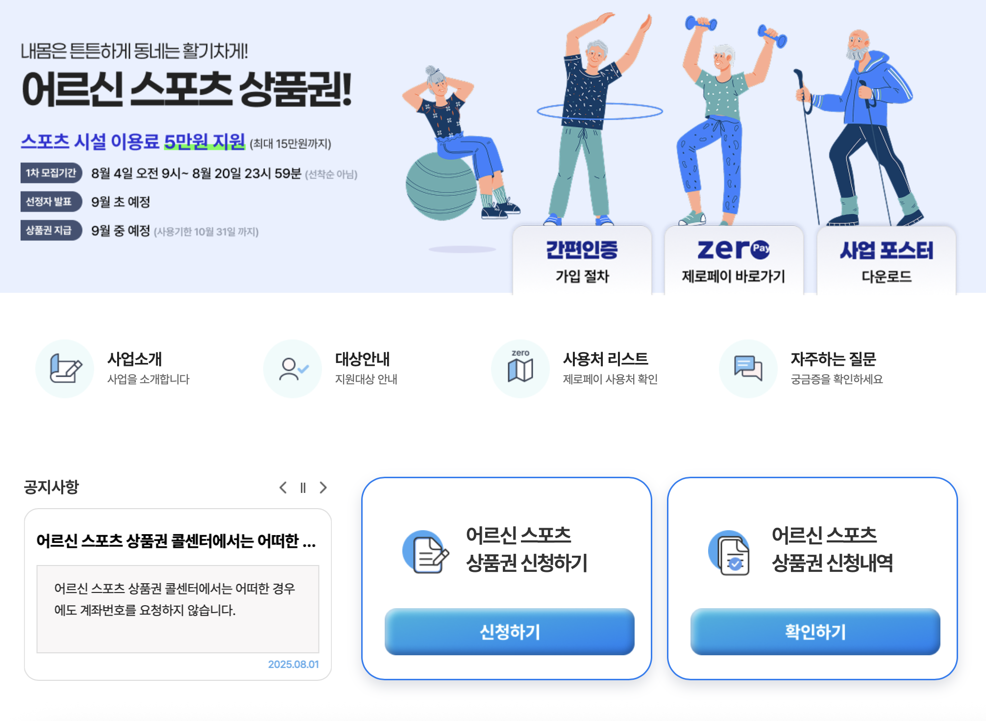 어르신 스포츠 상품권은 일정 금액을 바우처 형태(제로페이)로 지원해, 기초 연금 수급자이신 어르신들이 부담 없이 운동할 수 있도록 돕는 제도입니다.