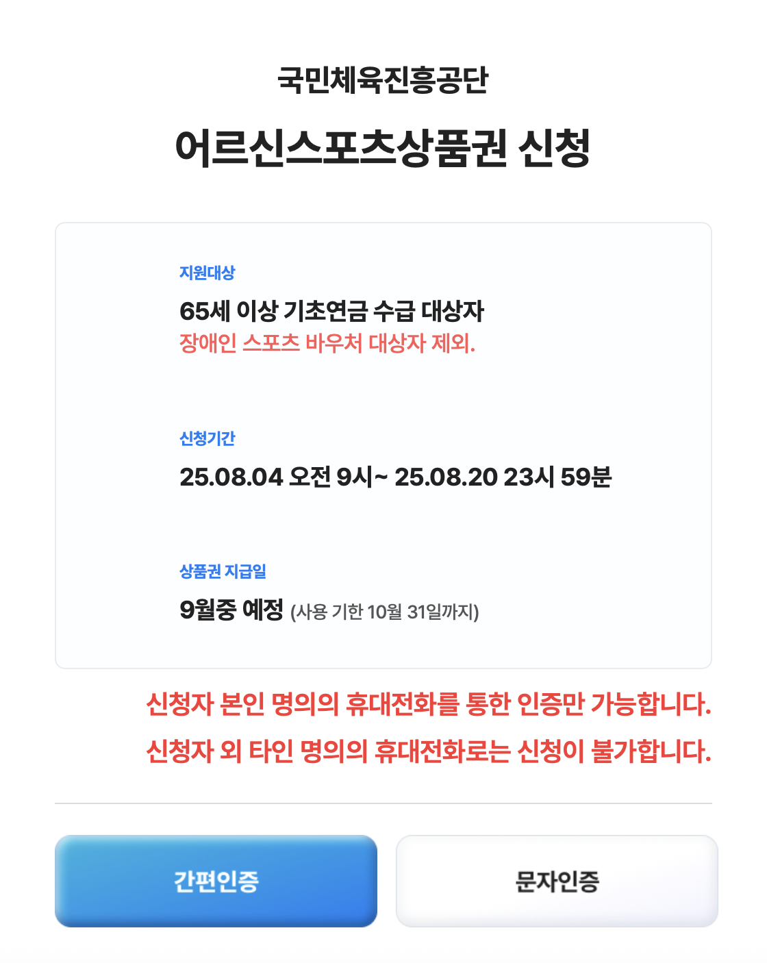 🚨신청자 본인 명의의 휴대폰으로만 인증이 가능하니 주의하세요!
