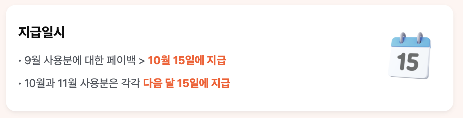 💡 9월 사용에 대한 페이백 ▶️ 10월 15일