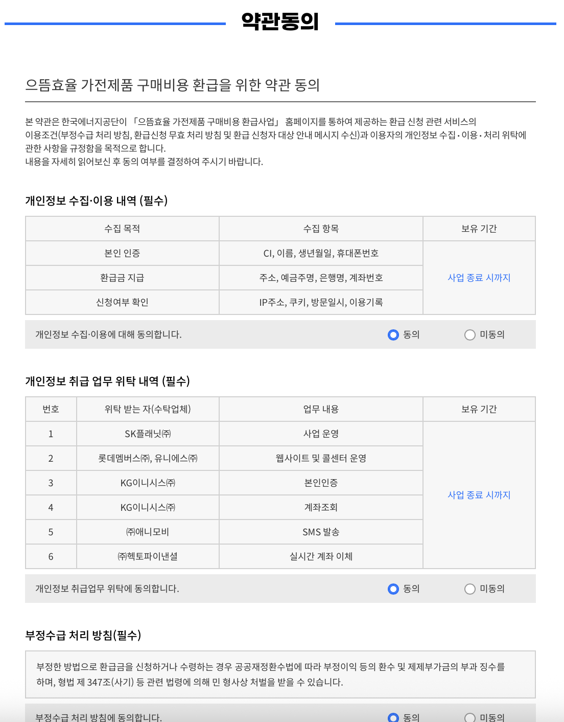 2. 필수 약관 정보들을 확인하시고 모두 동의 후 맨 아래 확인을 눌러주세요.