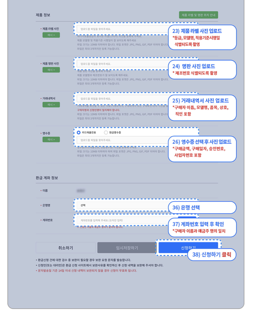 ⚠️ 필수 항목 : 구매자 성명, 품목, 모델명, 상호 및 사업자 번호, 구매 금액 및 구매 일자